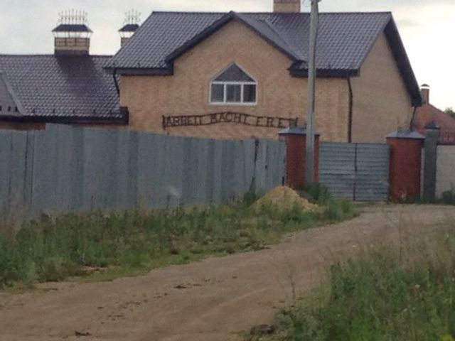 В копейском поселке Западный на одном из жилых домов появилась вывеска с надписью Arbeit macht frei, что в переводе с немецкого значит «Труд освобождает». Эта фраза размещалась на входе в фашистские концлагеря.