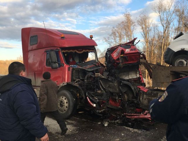 По данным регионального ГУ МЧС, авария произошла 6 апреля в 15:36 на 1549 км трассы. В результате столкновения один из грузовиков съехал с дороги.