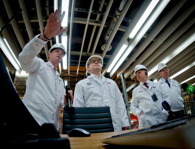 Впрочем, «Высотой-239» экскурсия не ограничилась, и главе региона продемонстрировали совместное с Роснано предприятие «Этерно», которое делает всякие габаритные и очень сложные детали для нефтегазовой промышленности. И снова почти километровые пролеты, печи, от которых идет жар, но только лишь когда открываются герметичные створки, гигантский пресс, ванны для охлаждения деталей, которые из печей достают гигантские погрузчики… Что-что, а высочайшая производственная культура налицо.