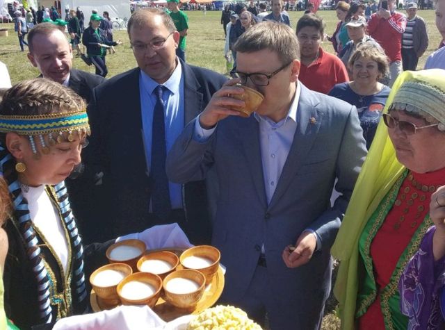 Алексей Текслер, казалось, поначалу был просто ошеломлен навалившимся на него неостановимым валом гостеприимства. Перед первой юртой он выпил поднесенную пиалу с кумысом, но затем, кажется, понял, что попробовать все будет слишком серьезной нагрузкой. Тем не менее, зашел в каждую юрту, прослушал все песни, просмотрел все выступления танцевальных коллективов. И даже смог эффектно вывернуться, когда одна из женщин от всей души попыталась затащить его в пляску.