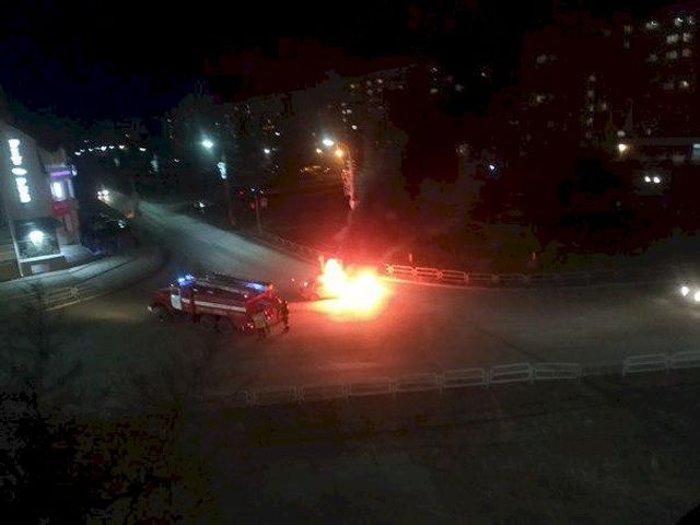 Инцидент произошел на пр. Коммунистическом: автомобиль, протаранив машины, проехал по газону, мимо забора и вылетел на перекресток с пр. Ильича. Машина прямо на ходу вспыхнула. На место происшествия приехали сотрудники МЧС и потушили автомобиль. Водитель остался жив.