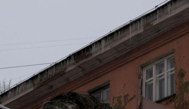 Недавно выпавший снег под воздействием температур начал подтаивать и скатываться к карнизу. Ночью эта кашица подмерзает, а утром, вновь подтопившись, падает на головы прохожим, которые ничего не подозревают, ведь снизу эти накаты практически не видно.