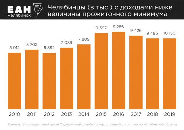 По данным службы государственной статистики в Челябинской области, в 2019 году среднедушевой доход населения в месяц вырос с 25 178,1 рубля до 25 414,2 рубля.