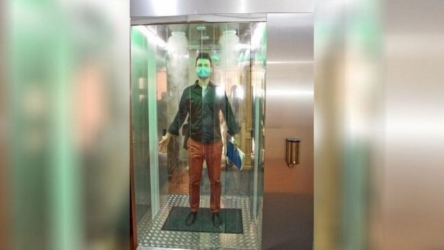 Как сообщает телеканал ОТВ, прежде, чем войти в специальную камеру, сотрудник становится напротив инфракрасного датчика, который измеряет его температуру. А во время прохода сквозь камеру сотрудников театра обдает специальным антибактериальным «сухим туманом» на основе наносеребра ARGITOS, обладающего антибактериальным свойством. Завершается процедура санитарной обработкой рук. Всего за один час дезинфекцию могут пройти около 250 человек».