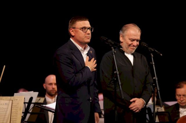 На сцену вышел Алексей Текслер и поприветствовал Валерия Гергиева и его оркестр.