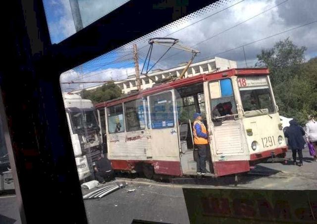 Как сообщают очевидцы, ДТП произошло на перегоне Трубный институт — Днепровская на улице Новороссийской в сторону конечной остановки «Чистопольская». Водитель большегруза якобы не заметил трамвай.