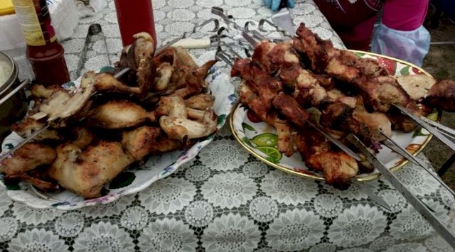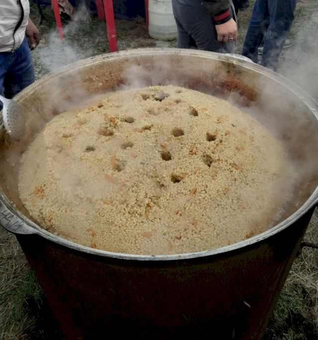 «Вот попробуй», — дед протянул нечто, на вкус оказавшееся бараньим жиром. — «Ты знаешь, какую силу он дает? Мне 70, а стоит так, что не переломишь!». Глядя на этого мощного старика, в его мужскую силу верилось безоговорочно. 100 граммов? В 9:30 утра субботы? А куда ж деваться от местного колорита. К тому же на столах — беляши, пирожки с любой начинкой, хлеб, разные колбасы, пельмени, вареники, овощи, на мангалах — шашлыки из говядины, баранины, курицы, а в казанах уже варится плов, от запаха которого голова закружится похлеще чем от самогона...