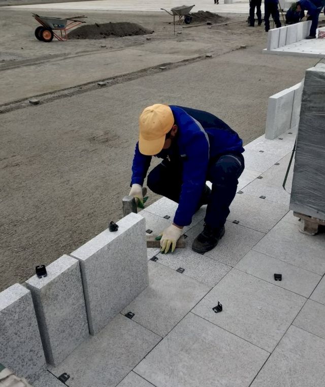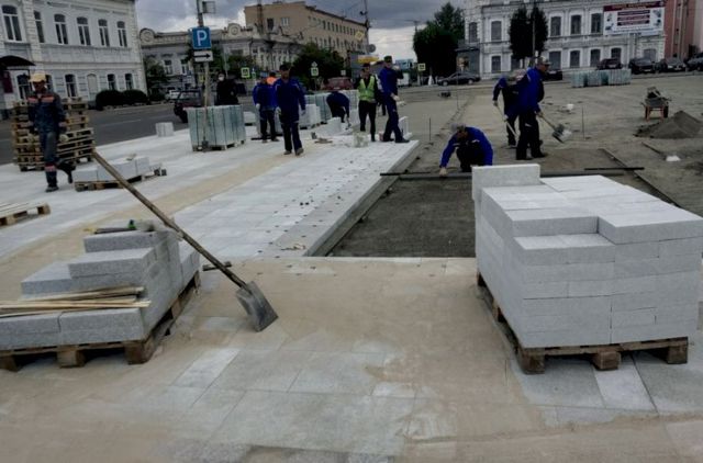 После этого губернатор обошел и осмотрел центральную площадь Троицка, которую реконструируют масштабнейшим образом (165 миллионов только вложения областного бюджета). Рабочие в этот момент укладывали мощную гранитную плитку, которую наверняка оценил бы мэр Москвы Сергей Собянин, известный знаток этих изделий. В любом случае, ничего подобного, скажем, в Челябинске, не укладывали. Пока не укладывали… А еще на площади появятся два фонтана, из них один — так называемый «сухой».