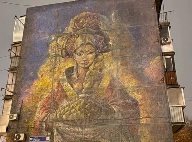 В Челябинске художники-граффитисты начали восстанавливать известное граффити «Девушка с караваем» на стене дома 161 по улице Труда, которое коммунальщики закрасили в ноябре прошлого года серой краской. Об этом сообщает «Первый областной».