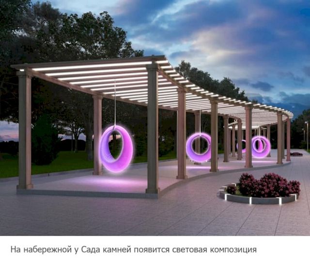 В сквере по Тернопольской установят трое качелей-балансиров. Такие же поставят на набережной реки Миасс за историческим музеем. Там же будут и трое качелей в виде колеса с подсветкой.