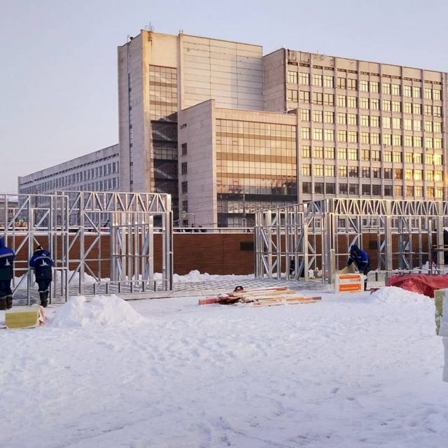 В Челябинске возле памятника Курчатову решили залить каток. Однако параллельно начали строить павильоны, судя по всему, для проката коньков. Однако общественники предполагают, что эти строения могут остаться на охранной территории и после того, как лед растает.