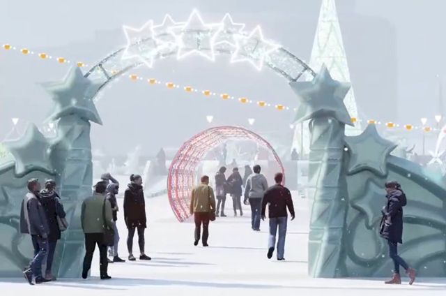 Управление культуры мэрии Челябинска опубликовало визуализацию ледового городка в космической тематике на площади Революции.
