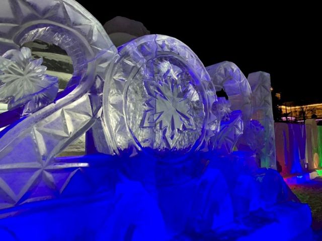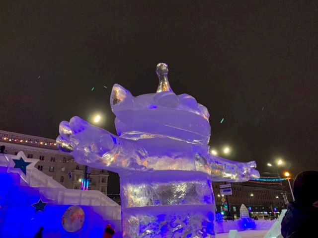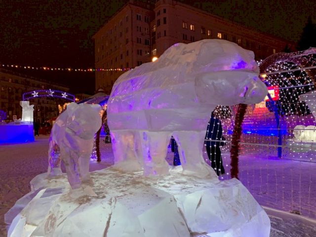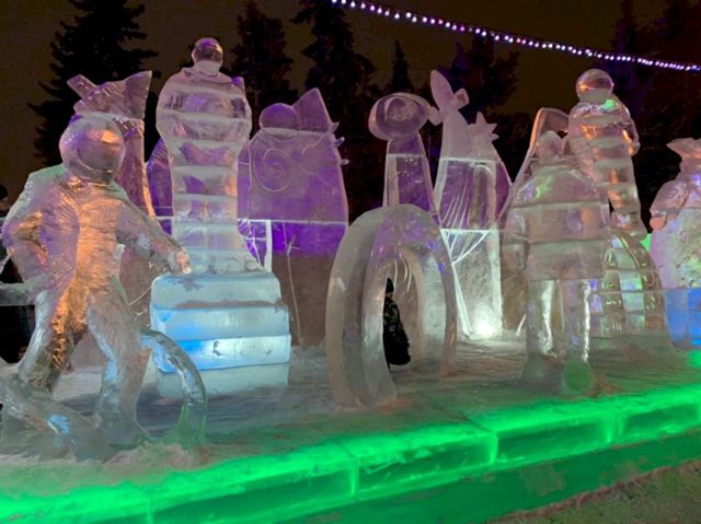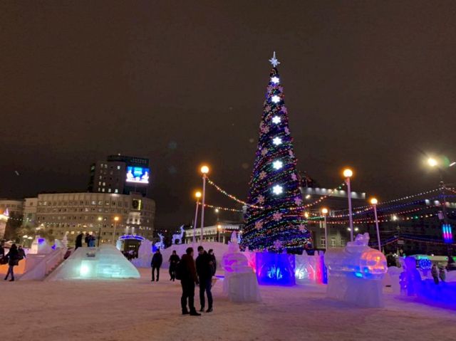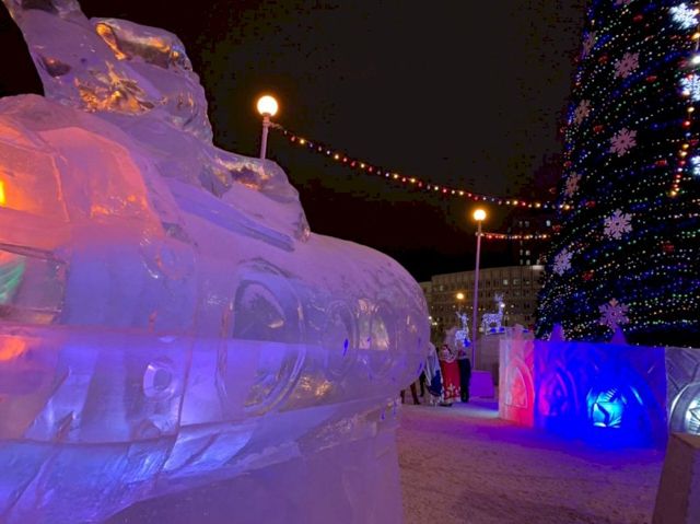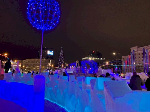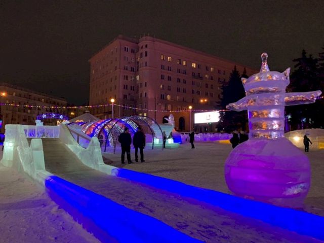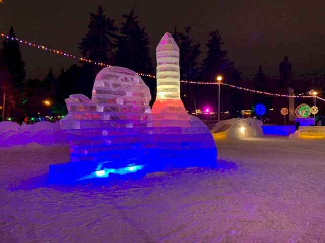 В Челябинске сегодня открыт ледовый городок на площади Революции. Его тематика – космос. Построены горки, скульптуры, есть карусели. На открытие пришла глава города Наталья Котова.