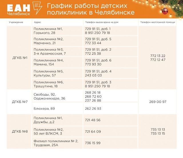 Все поликлиники Челябинска ежедневно будут работать и принимать пациентов в период январских каникул. Об этом сообщили в Управлении здравоохранения региона.