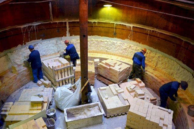 На то, чтобы демонтировать старую печь, у сотрудников предприятия ушло около месяца, причем все это проводилось без остановки производственного процесса. Монтаж новой печи осуществлялся на месте. Корпус печи, который является важнейшим элементом, выполнен из 10-миллиметровой углеродистой стали. При выполнении огнеупорной кладки использовалось более 10 видов огнеупорного кирпича, способного выдержать температуру до 950-980 градусов. Во время футеровки кирпич выкладывают в несколько слоев, общей толщиной в 560 мм, низ (подина) печи заливается жаропрочным бетоном, а также собираются газоходный тракт и элементы испарительного охлаждения.