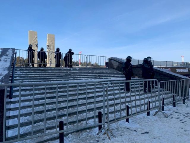 Как отмечает корреспондент ЕАН с места событий, силовиков больше, чем протестующих. Поскольку проспект Ленина был оцеплен, участники несанкционированного шествия пошли к площади Революции через дворы.