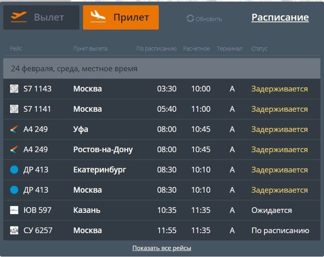 Как ЕАН уточнили в пресс-службе, система «слепой посадки» самолетов в такой ситуации не поможет, так как дело не только в плохой видимости, но еще и шквалистом ветре до 25 м/с.