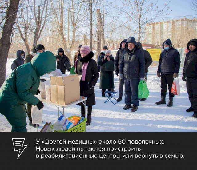 Каждый четверг команда собирает пакеты со сладостями, гигиеническими принадлежностями, вещами, лекарствами и отправляется «в поле». Бездомные ждут «другую медицину» недалеко от мусорных баков – и с радостью встречают. Каждый выезд обязательно фиксируют на фото, чтобы отчитаться перед теми, кто помог в организации.