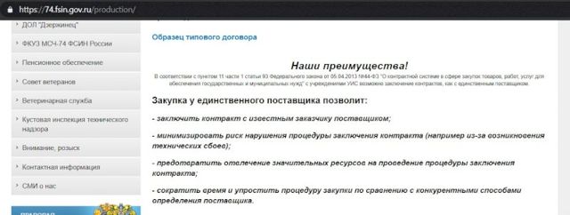 ГУФСИН РФ по Челябинской области разместило у себя на сайте информацию о преимуществах заключения с ним контрактов по госзакупкам как с единственным поставщиком. В УФАС решили, что это сообщение может ограничивать конкуренцию, а соответственно, нарушать федеральное законодательство.