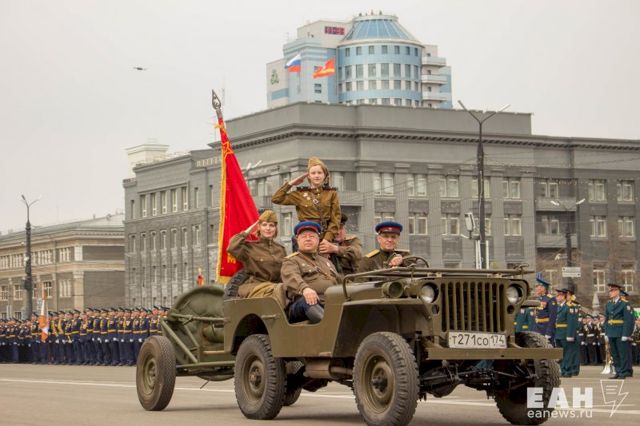«По традиции по площади Революции прошли участники построения, а также реконструированная рота бойцов в форме и с оружием времен Великой Отечественной войны. Также в параде была задействована военная техника 40-х годов, послевоенного периода и авиация», – сообщает пресс-служба администрации Челябинска.
