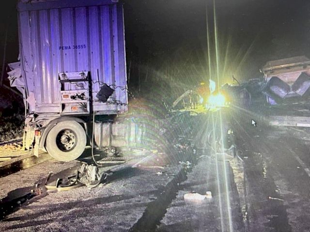 Мужчина за рулем фуры Scania выбрал небезопасную скорость движения и врезался в стоявший на обочине КамАЗ, после чего вылетел на встречку и столкнулся с грузовым Mercedes-Benz Actros.