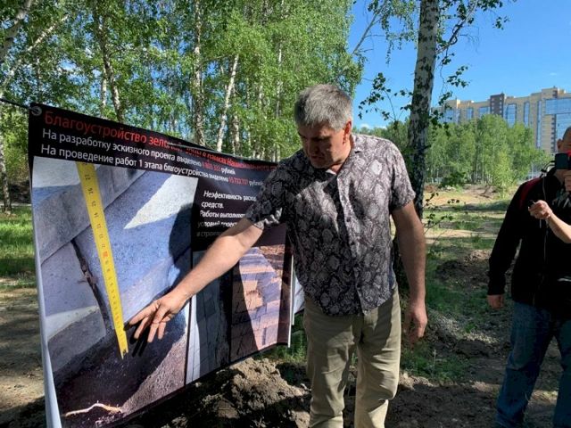 В Челябинске общественники и депутаты вместе с чиновниками сегодня инспектировали сквер в Калининском районе, который располагается за ледовой ареной «Трактор». Его строительство еще продолжается, но к уже выполненным работам у ревизоров возникли претензии. Так, местный житель-активист и бывший депутат района Николай Ольховский заявил о нарушении закона при устройстве пешеходных дорожек, так как при движении в них можно увязнуть. Это ухудшает движение инвалидной коляски, например, что особенно актуально для Ольховского. Еще одна проблема с покрытием – риск прорастания сквозь него сорной травы. Ответ держал глава района Сергей Колесник, представители проектировщика и подрядчика.