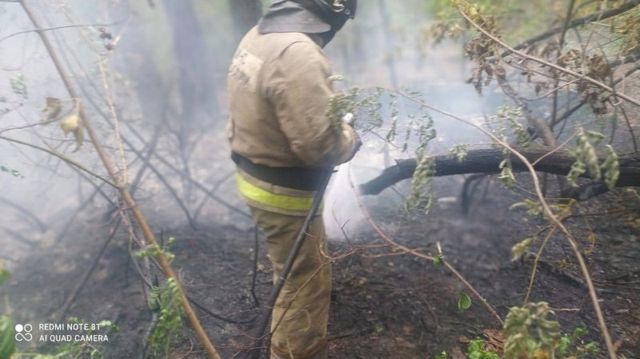 Горит «лесная подстилка», без открытого огня. Сейчас «подстилка» оперативно проливается пожарной техникой. Ситуация находится под контролем, удалось локализовать возгорание», — написал замминистра.