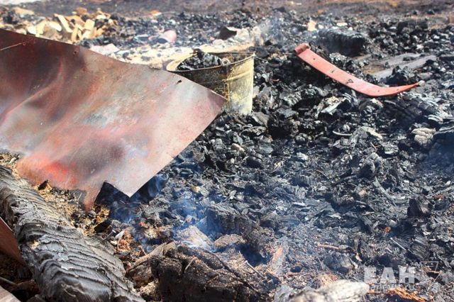 Эти вопросы мы позже зададим главе района, а пока продолжаем обход территории. На соседнем участке разбирают обломки пожилые супруги и их сын Сергей Горбань. Из груды обгоревших вещей они выбирают металл, чтобы сдать его и выручить хоть немного денег. Найти уцелевшие вещи надежды нет. Хозяин рассказывает, что пять лет строил этот дом из шпал, облицовывал кирпичом, а лишился всего за 10 минут. Сгорели два автомобиля во дворе и гараже, уничтожены станки для распилки досок, прочая хозяйственная техника и инструмент.