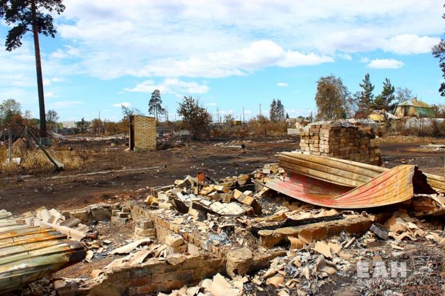 В Джабыке ситуация хуже. Здесь выгорели целые улицы, в основном на окраине поселка. От заборов, птичников и загонов для скота, от грядок и теплиц вместе с посадками не осталось ничего. В этом эпицентре уцелели три дома. Хозяйка Людмила Колобынцева рассказала, что двое суток вместе с супругом отстаивала дом. По ее словам, когда огонь только подошел к жилым домам, приехали пожарные.