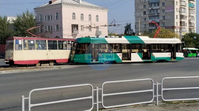 В Челябинске на пересечении проспекта победы со Свердловским сошел с рельсов новый трамвай, который два дня назад торжественно выпускал из депо губернатор Челябинской области Алексей Текслер.
