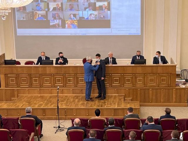 Сегодня на заседании Законодательного собрания Челябинской области выигравший на дополнительных выборах по Курчатовскому одномандатному округу Павел Избрехт получил значок депутата. С назначением его поздравил председатель Заксо Владимир Мякуш.