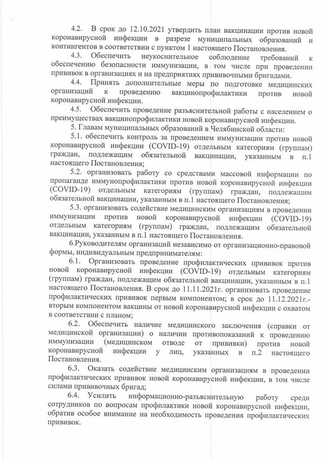 За день до постановления главного санитарного врача Челябинской области аналогичный документ подписал санитарный врач Снежинска. А в Свердловской области решение об обязательной вакцинации было принято еще 1 октября.