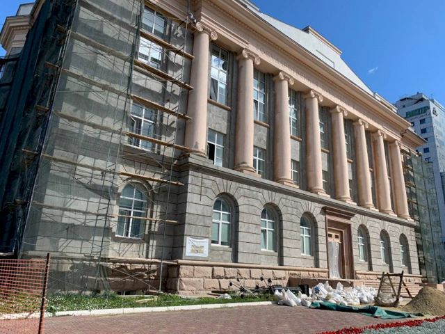 На данный момент рабочие генподрядчика ООО «Юнивест-строй» из Екатеринбурга демонтировали то, что налепила предыдущая фирма «Евразия-Сервис», и нанесли грунтовку глубокого проникновения. На реставрацию отправили и входные двери Публички. Восстанавливают штукатурку парапета, балясин, аттика кровли с нанесением декоративной штукатурки.