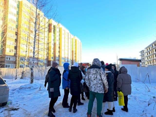 Свои истории и возникающие вопросы люди продолжают обсуждать уже и после собрания. На территорию стройки решили пускать по пять человек от каждого из трех подъездов для осмотра квартир. Остальные ждут своей очереди на морозе. Те, кому удалось увидеть свою будущую квартиру, оказываются не в восторге.