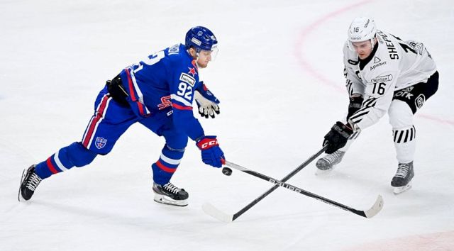 Начало встречи осталось за подопечными Романа Ротенберга. Уже на пятой минуте Дмитрий Яшкин вывел СКА вперед. Вскоре «черно-белые» заработали большинство, и в первой же атаке сумели его реализовать. Однако судьи отменили взятие ворот из-за игры высокоподнятой клюшки у Сергея Калинина.