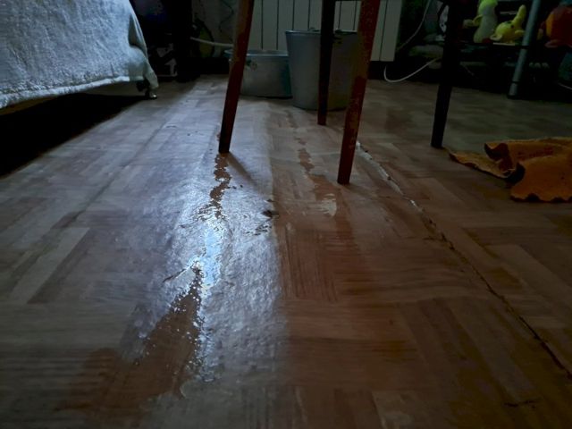 В заброшенной квартире тоже капает с потолка, на полу лужа. Один из соседей показал трубы отопления, которые установлены на чердаке. Несколько лет назад их меняли, но протечки возникли снова.