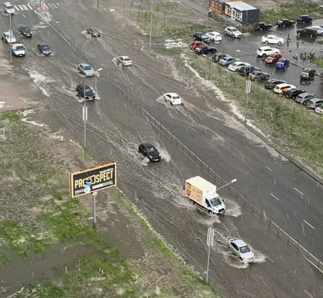 В Челябинске больше всего осадков выпало на северо-западе города. Ливень длился 10 минут. За это время Университетская набережная превратилась в океан. Жители жалуются на то, что ливневки не справляются. Небольшой град прошел в Сосновском районе.