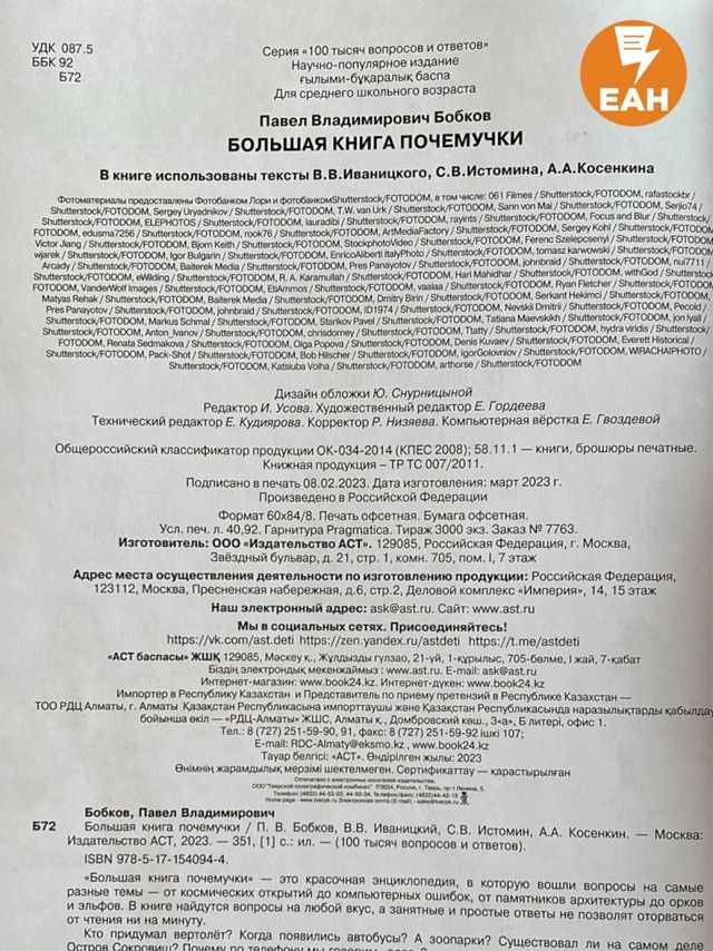 Энциклопедия была выпущена в марте 2023 года. Изготовителем значится «Издательство АСТ».