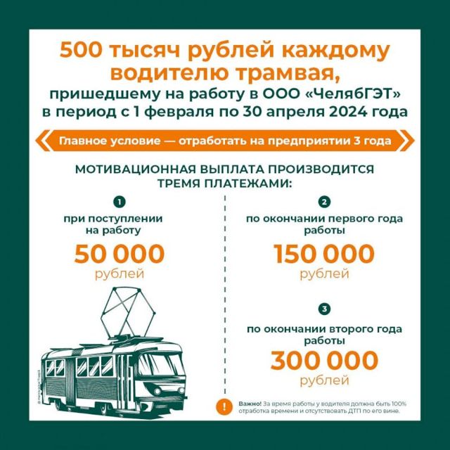 "Но для этого нужно не только трудоустроиться в МУП «Служба организации движения» или ООО «ЧелябГЭТ», но и отработать два и три года соответственно", - сообщили в мэрии. Ниже в карточках расписаны условия выплат.