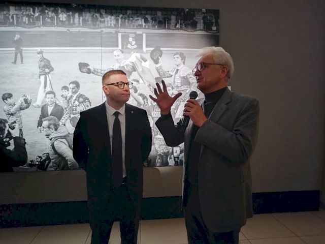 Когда пришло время, журналистов препроводили в Александровский зал музея. Здесь и выяснилось, что взято за основу первой из четырех экспозиций выставки (да, они будут менять друг друга каждые две недели, и выставка продлится до 5 мая) — это общение Виктора Христенко с легендарным испанским тореро Пепином Лирией во время его выступлений в Толедо и Мурсии в 2017 и 2018 году.