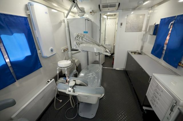В кузове есть несколько отсеков: помещение приема пациентов, непосредственно стоматологический кабинет, оснащенный современным оборудованием и расходными материалами, рентген-аппаратом, технический блок с генератором, санитарная комната. Две таких мобильных стоматологии передали военным из чебаркульской 90-й танковой дивизии.