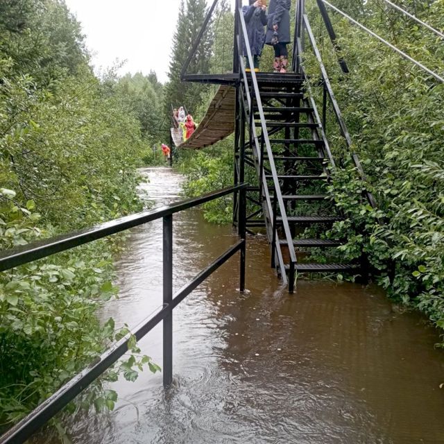 Из-за непрерывных дождей переправиться вброд невозможно – вода сильно поднялась и продолжает прибывать. Судя по прогнозу погоды, в ближайшие дни ситуация вряд ли изменится.