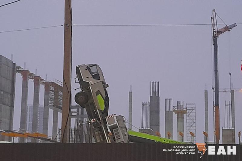 В Челябинске на строительной площадке аквапарка «Большая вода» опрокинулся автокран. Об этом сообщают очевидцы.