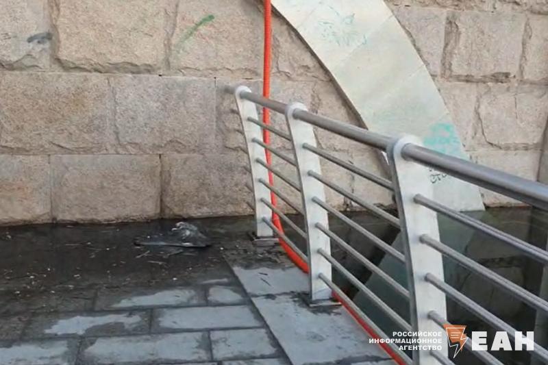 Уровень воды в реке Миасс поднялся, когда водосброс с Шершневского водохранилища увеличили с 14 до 50 куб. м/с. После этого не только подтопило набережную у здания филармонии, но и погасла подсветка.