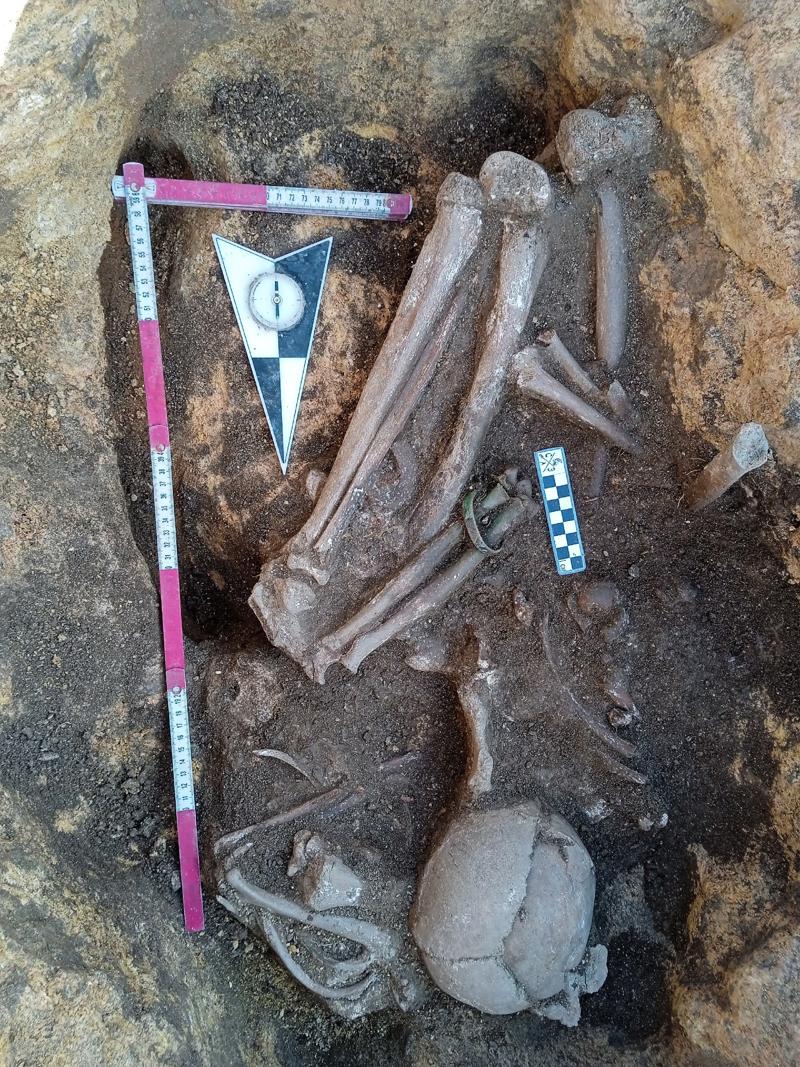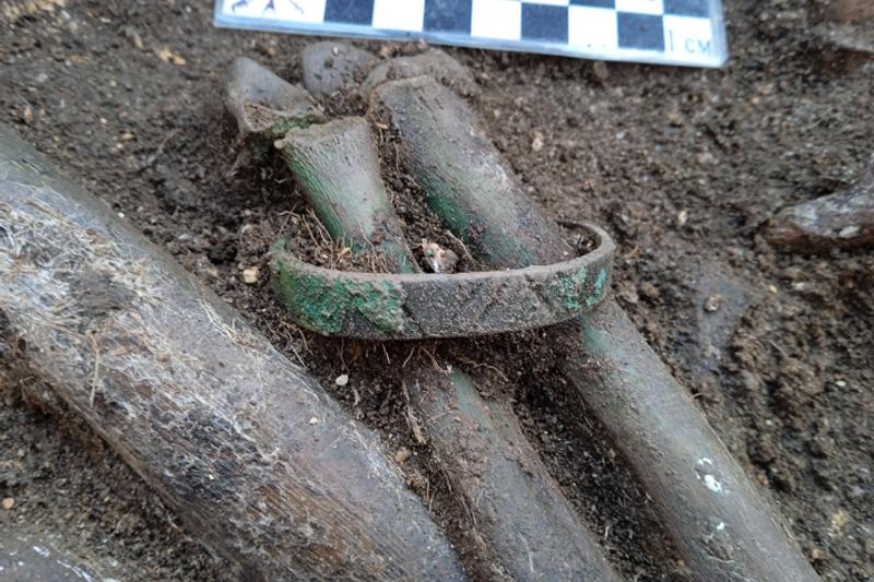 Во второй могильной яме оказались останки двух человек, предположительно, женщины и подростка. На руке женщины обнаружили медный браслет.