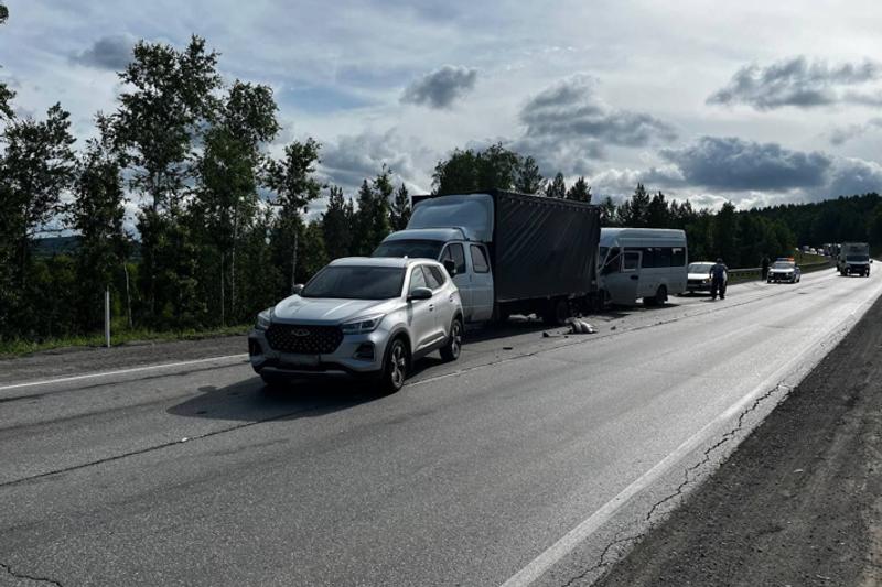 ДТП произошло в понедельник, 30 июня, в 08:50 на 1618-м км трассы. Столкнулись рейсовая маршрутка Усть-Катав — Малояз, «Газель» и два легковых автомобиля.