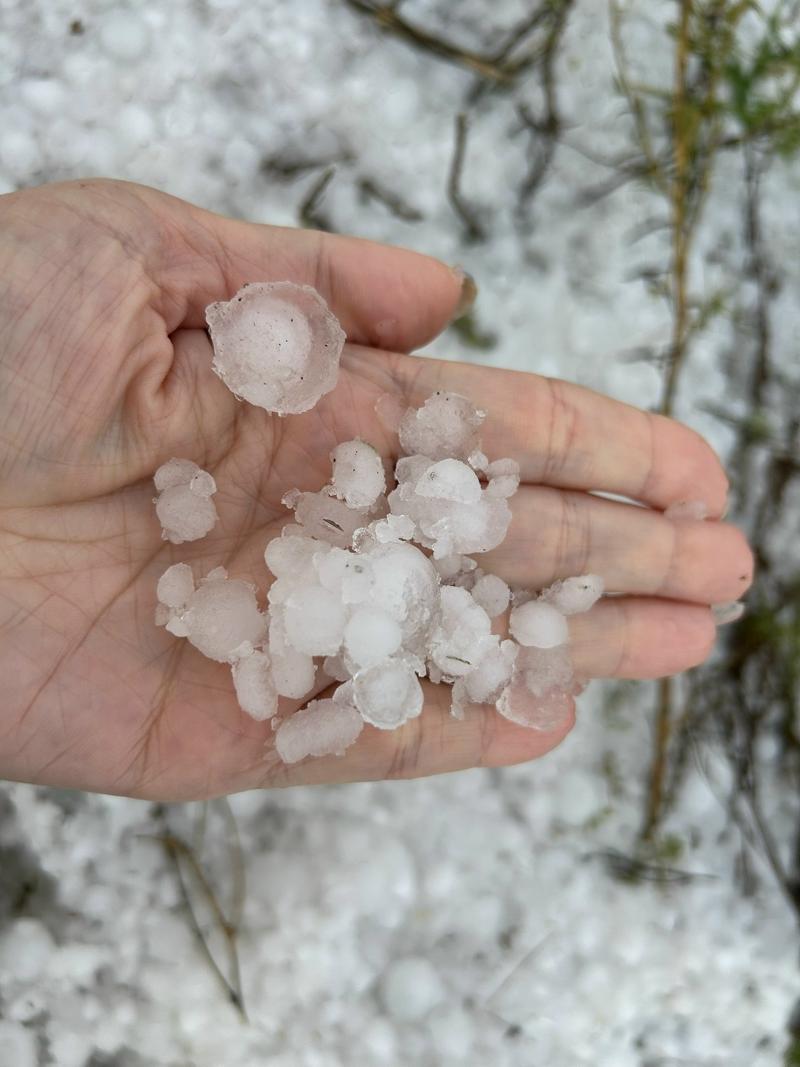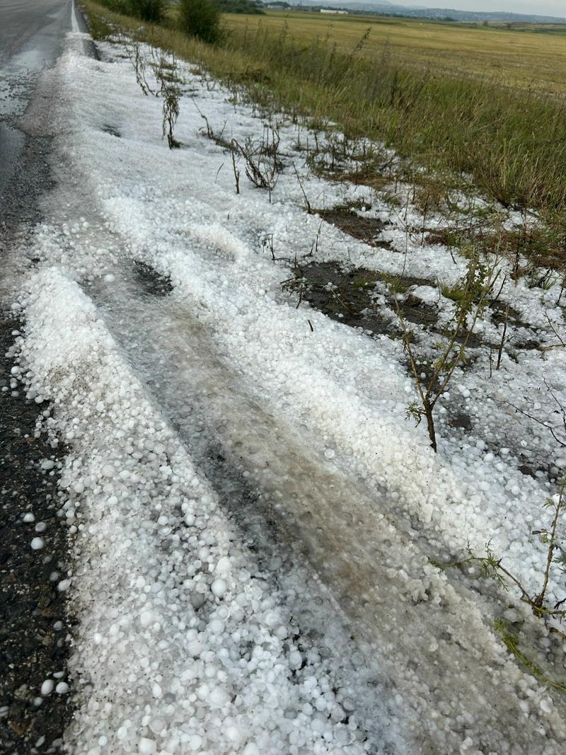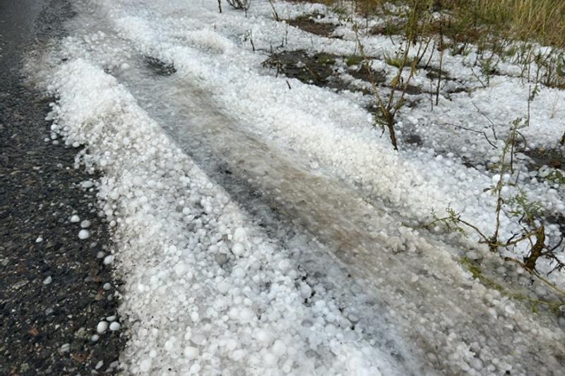 Подписчики сообщества отмечают, что сугробы из града видели и у местной птицефабрики.