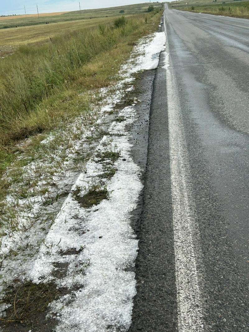 На юге Челябинской области крупный град засыпал дороги и поля. Об этом сообщила группа «Звезда – новости Агаповского района» во «ВКонтакте».
