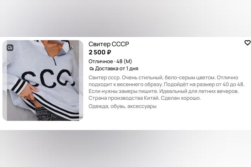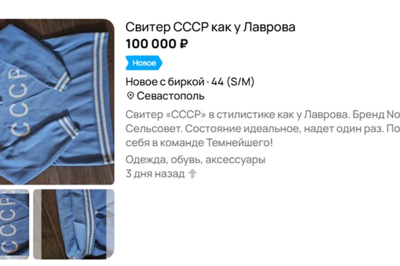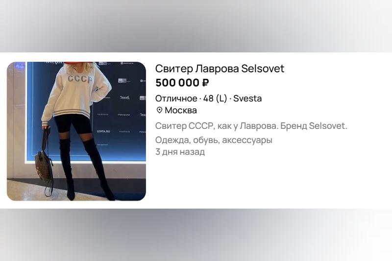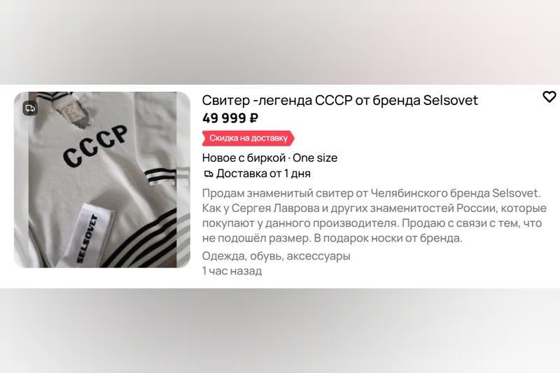 На сайтах объявлений активно продают свитеры как у Лаврова с надписью «СССР». Кто-то утверждает, что это товар челябинского бренда SelSovet, кто-то честно признается: одежда просто очень похожа на оригинальную модель, но на самом деле это no name.