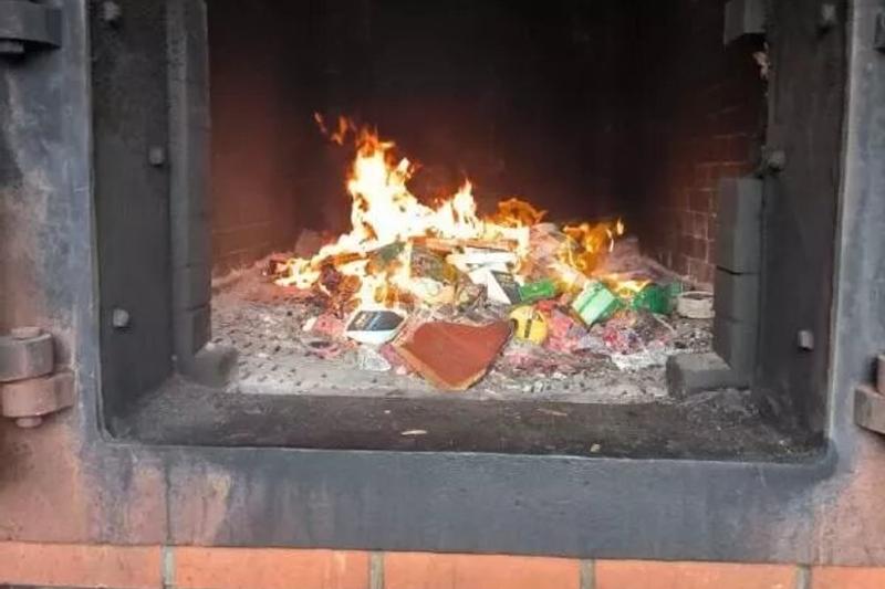 Судя по фото, опубликованному Россельхознадзором, сыр сожгли в печи.